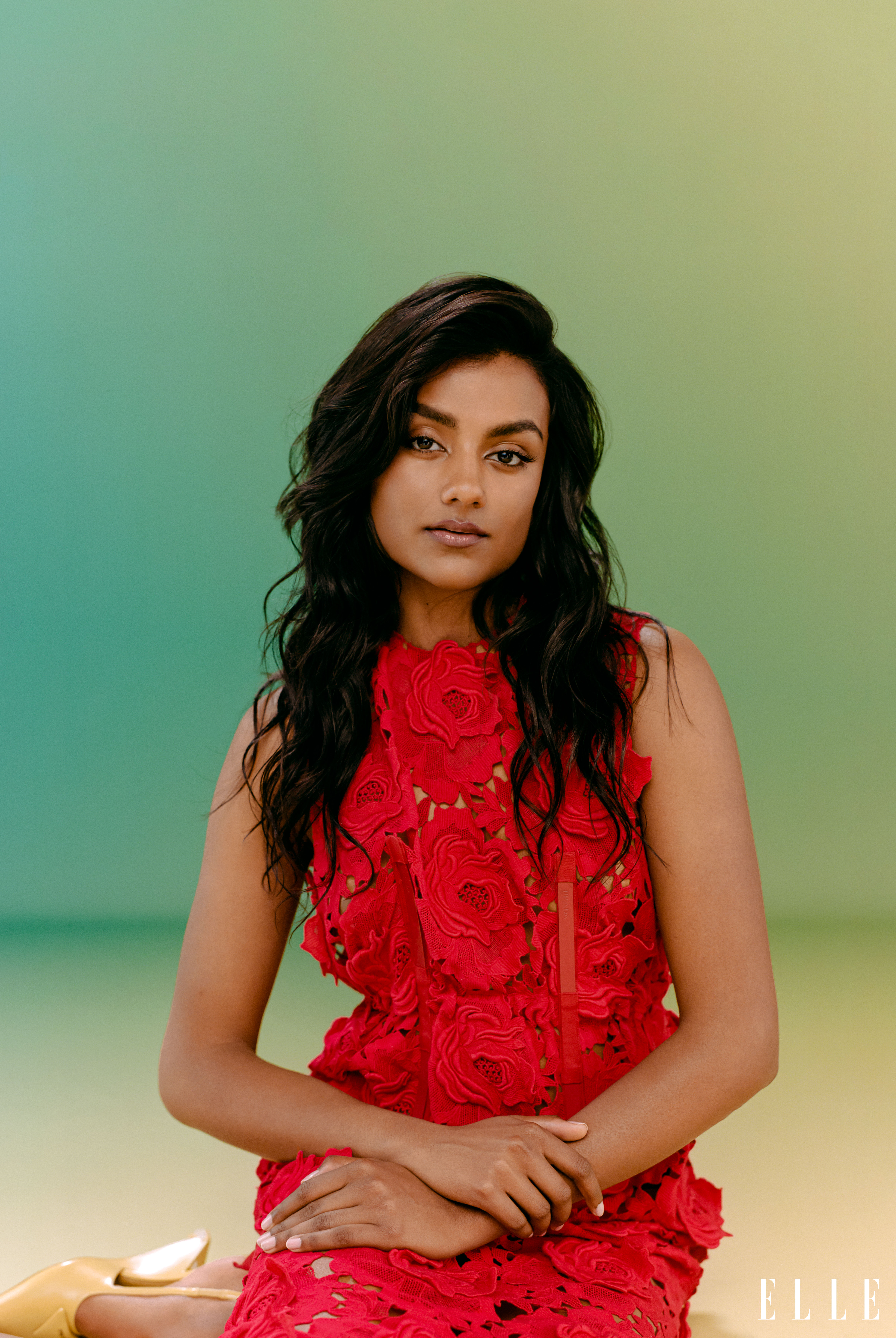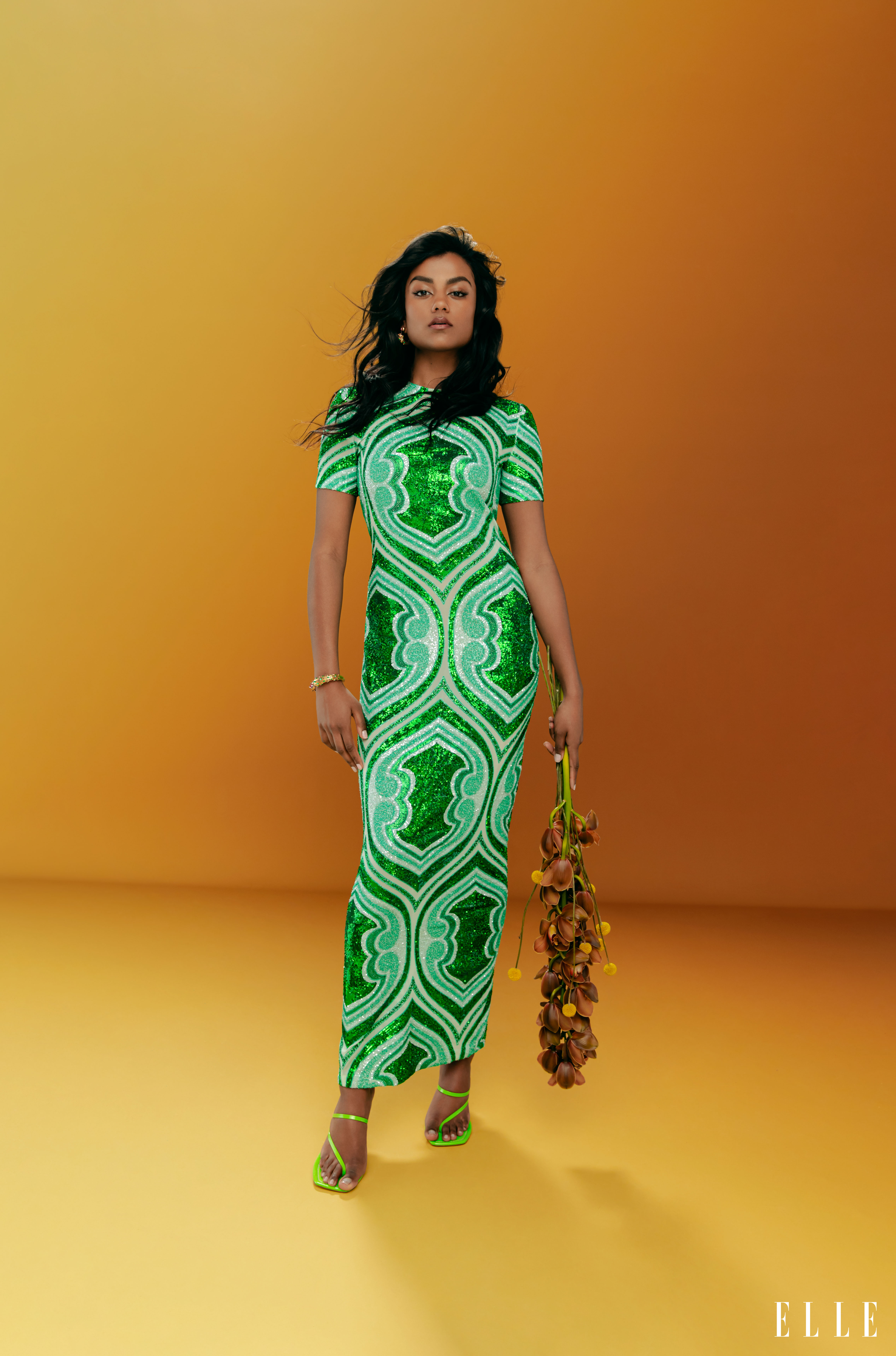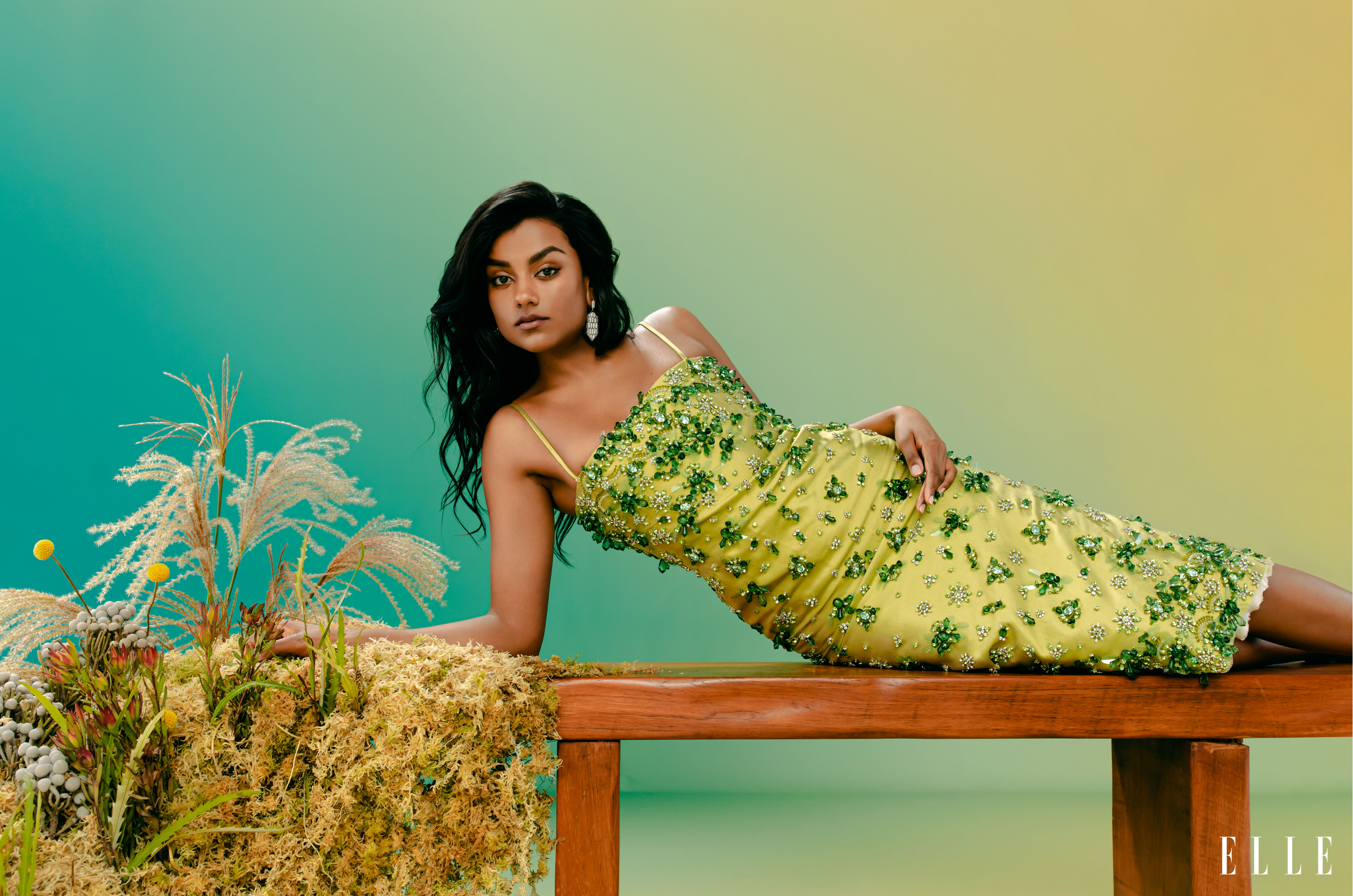 Simone Ashley shot by Christina Ebenezer and styled by Anna Trevelyan for the May 2022 cover story of Elle US.